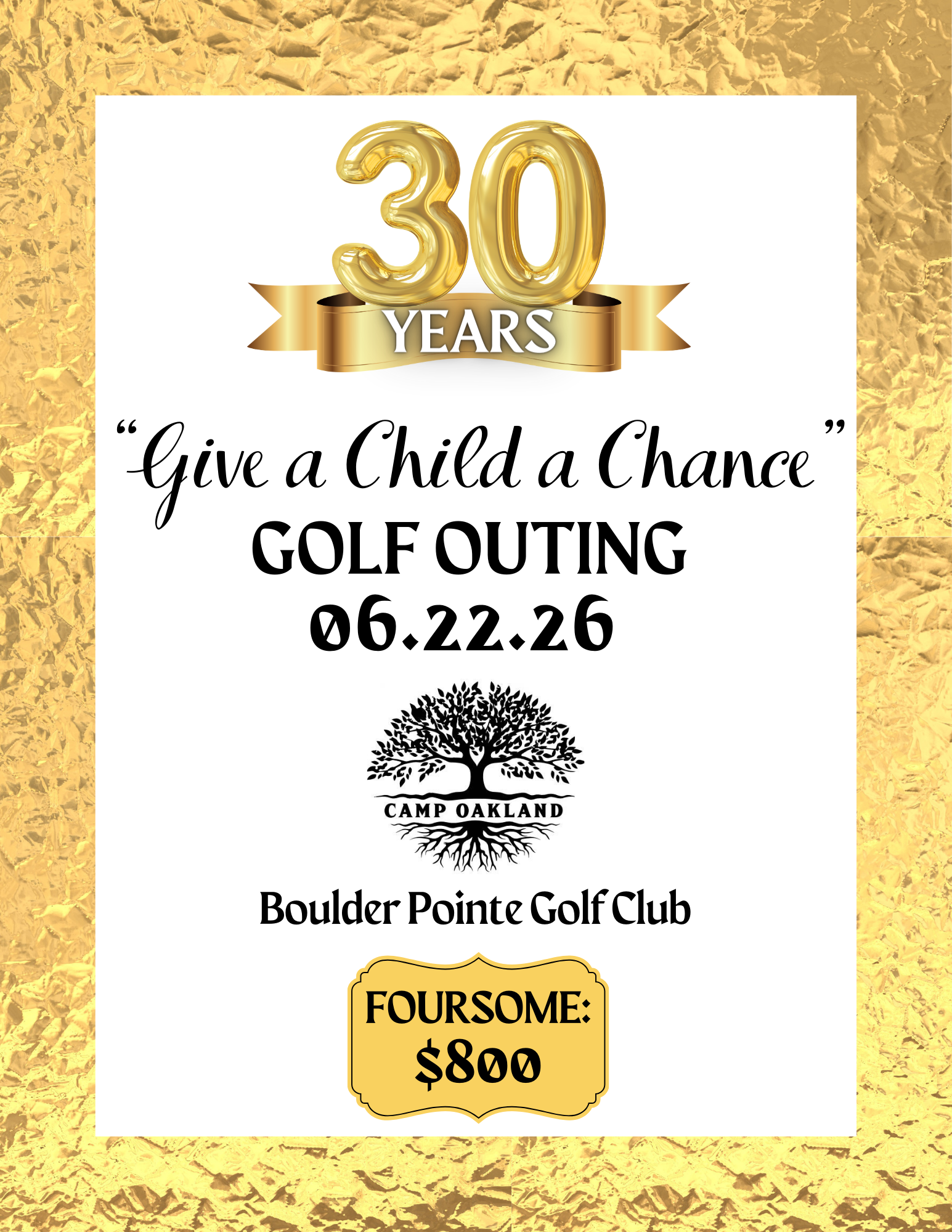 Please Join us for our 30TH YEAR of hosting our "Give a Child a Chance" Golf Outing!